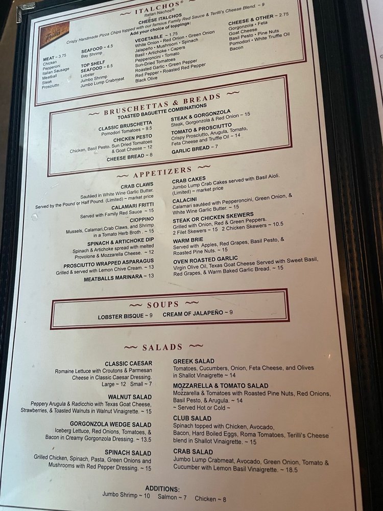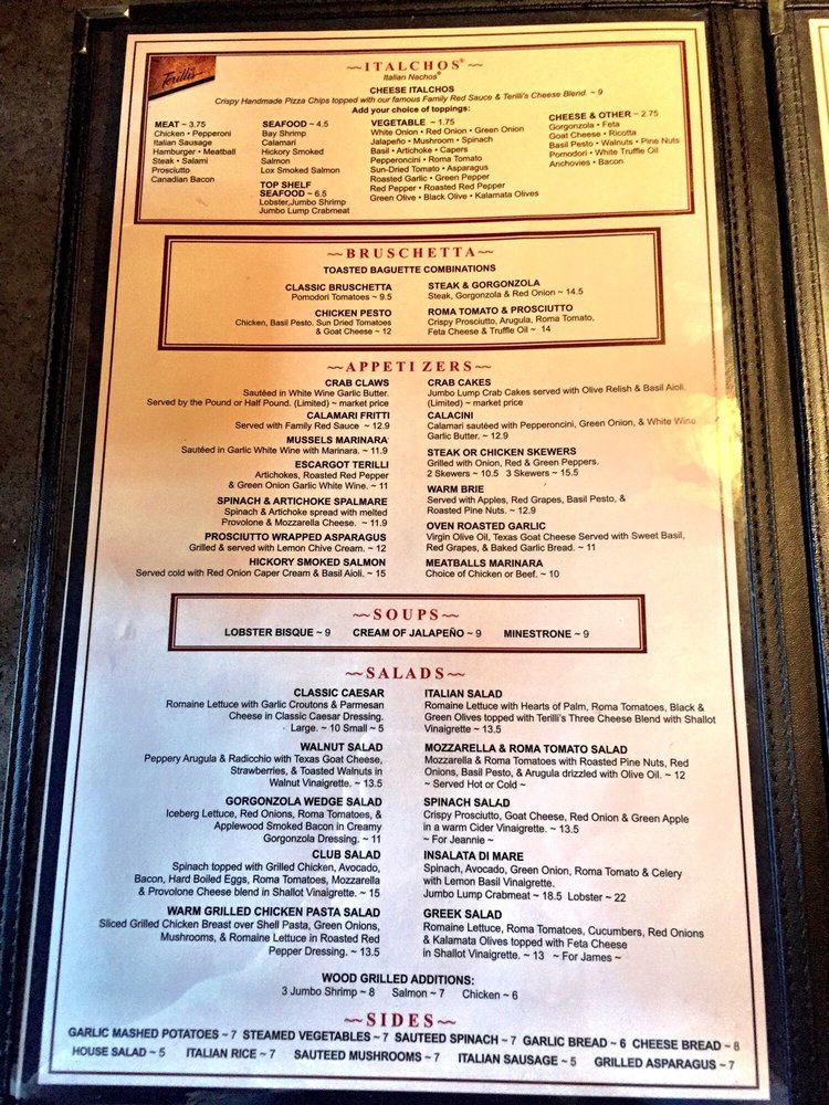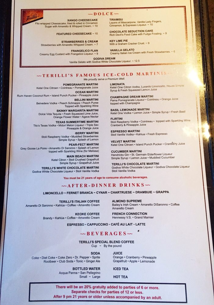 Terilli's Restaurant & Bar Menu (Update 2025)